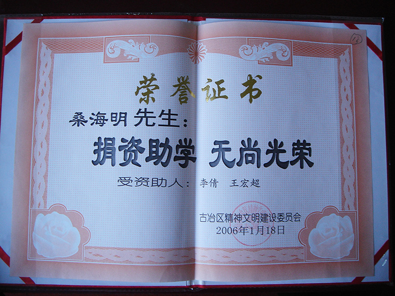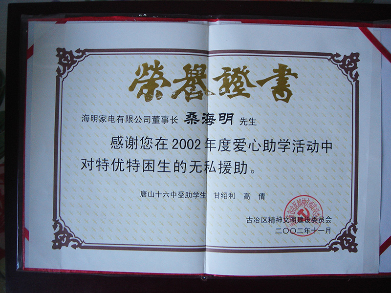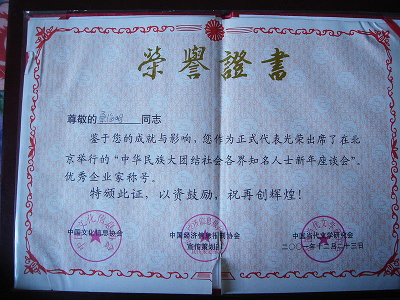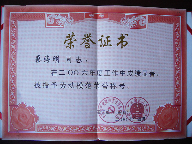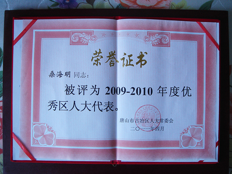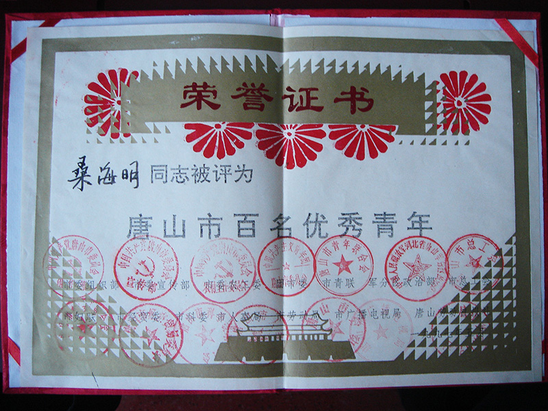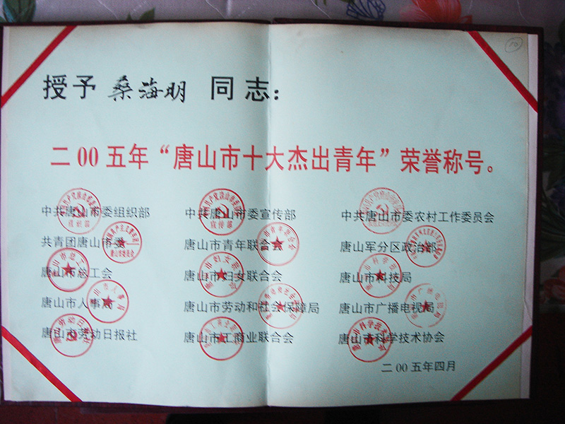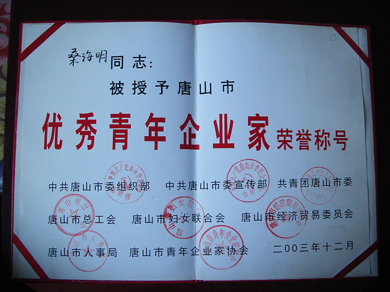 集團董事長桑海明自1988年開始創業至今已有三十余年的從業歷程,曾歷任唐山市政協委員,唐山市青聯委員,唐山市殘疾人企業家協會副會長、古冶區人大代表、古冶區殘聯副主席、古冶商會副會長、古冶區私營企業協會副會長等職務,并多次被授予如下殊榮: