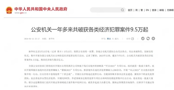 第十五個全國公安機關打擊和防范經濟犯罪宣傳日活動啟動儀式在河北雄安新區舉行。據了解,2023年以來,截至2024年3月,公安機關共破獲各類經濟犯罪案件9.5萬起、挽回經濟損失數百億元。同時,各地公安經偵部門嚴格落實公安機關服務保障高質量發展若干措施,推進實施《公安經偵部門便民利企十項工作指引》,研究推出更多服務保障舉措,積極回應企業和群眾訴求,切實提供便利服務和安全保障。