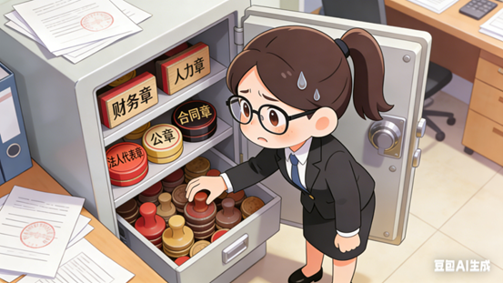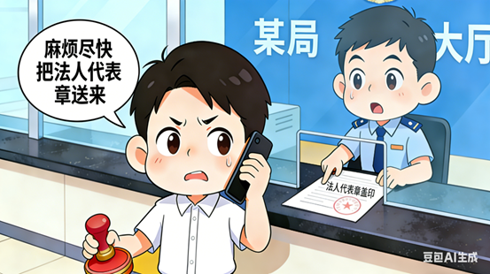 財務人員,辦理業務只帶了公章、財務章,蓋章時發現還要法人代表章,送章跑斷腿。