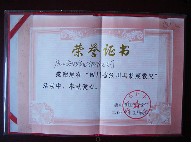 海明聯合能源集團有限公司在“四川省汶川縣抗震救災”活動中,奉獻愛心