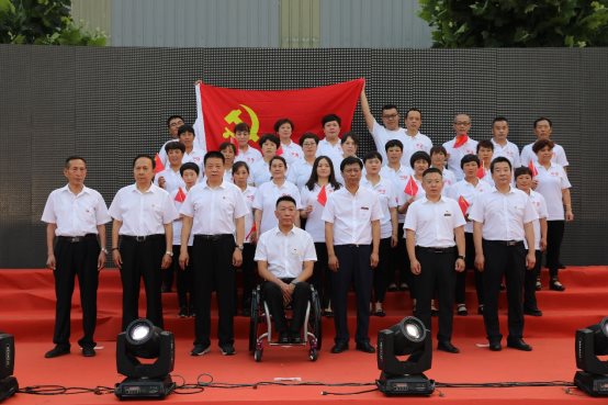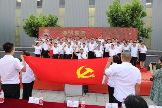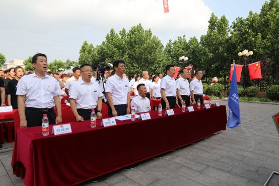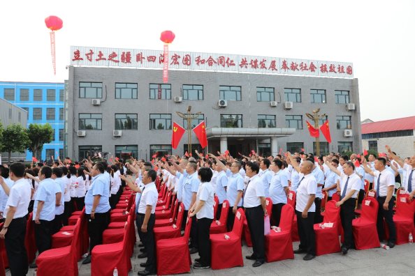 集團(tuán)公司董事長(zhǎng)桑海明帶領(lǐng)全體共產(chǎn)黨員向黨旗宣誓。