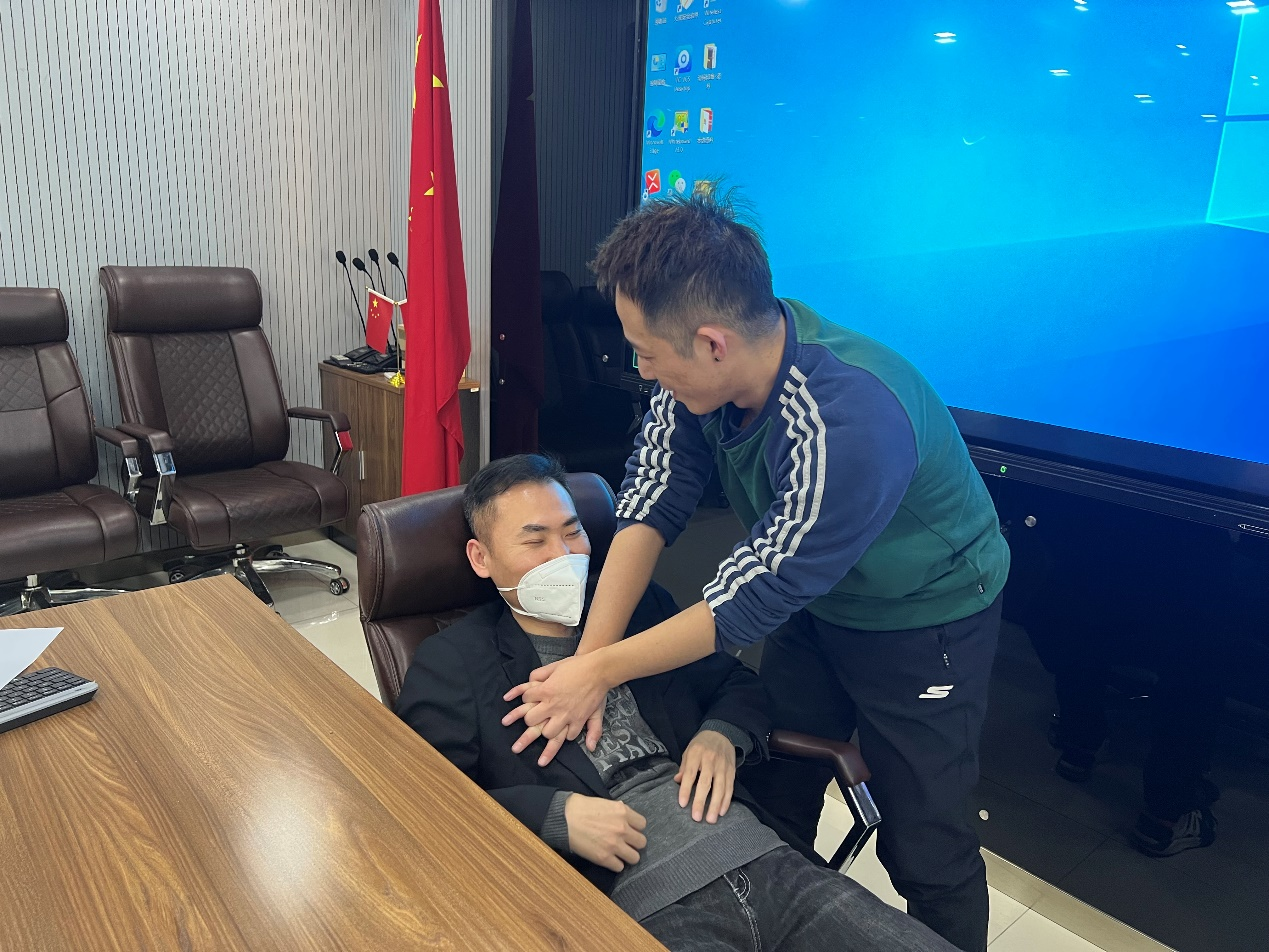 其間,由各位經(jīng)理實(shí)人實(shí)地演繹的傷患救治情境更是繪聲繪色,重點(diǎn)介紹了海姆立克法、外傷應(yīng)急包扎法、人工呼吸法、以及心肺復(fù)蘇法。在幽默詼諧的同時(shí)使人印象深刻,獲得了員工的一致好評。