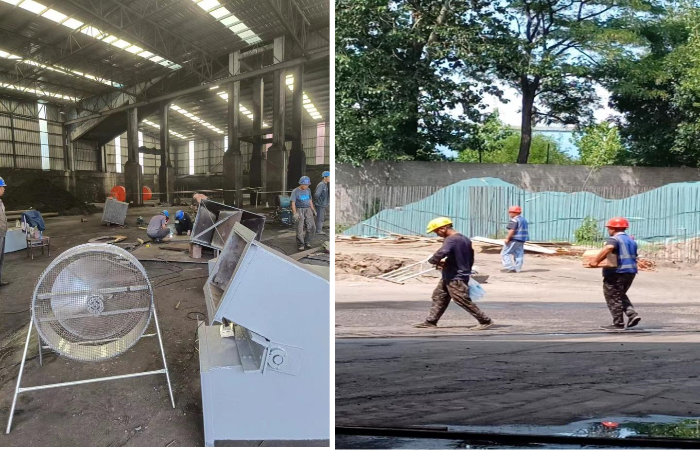 (作業現場安裝了風扇,為一線工人發放冰棍,礦泉水)