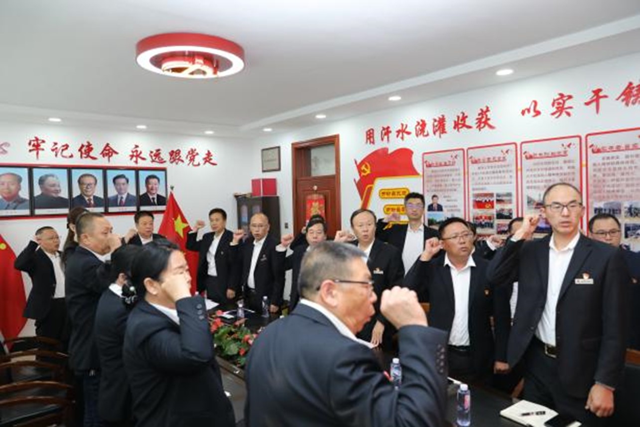 會議最后,與會同志一起向黨旗宣誓重溫入黨誓詞,讓黨的誓言永記心間。