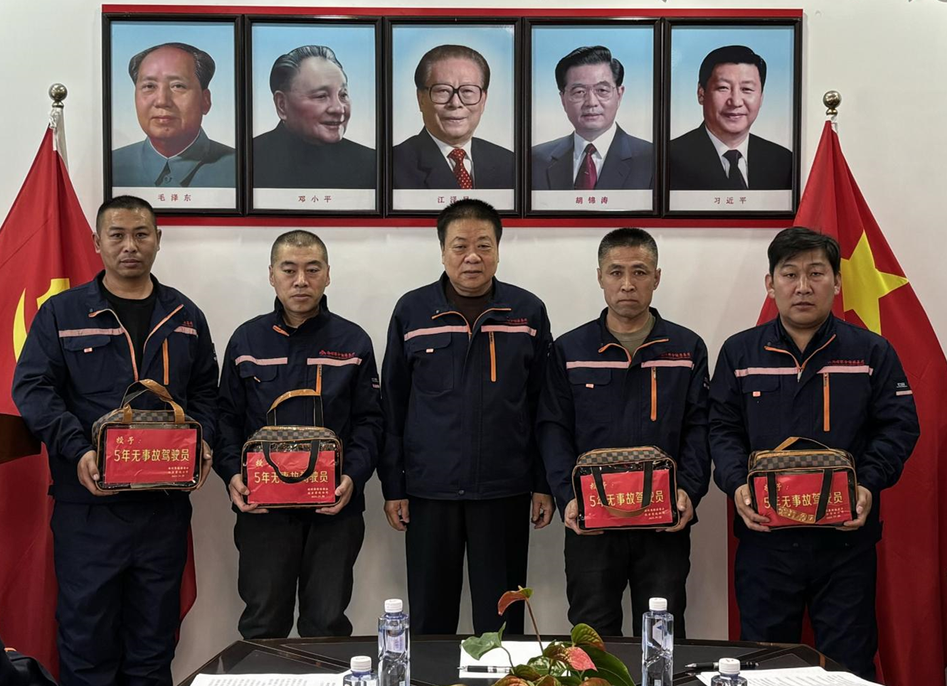 集團公司黨委副書記、副總裁、安委會常務副主任王林成親自為連續 5 年以上在公司安全行車的大貨車駕駛員何俊峰、歐陽寶勤、武寶劍、代金光等代表進行頒獎,激勵車隊大貨車駕駛員以他們為榜樣,以安全行車踐行海明人精神,人人爭做安全行車的典范。