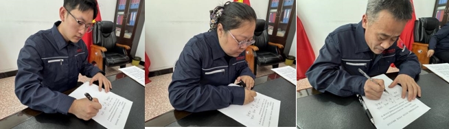 會議現場,與會的北方貨運公司總經理石堅、優陽選煤廠長王朝林、各單位主管安全副總經理、安全環保檢查員,依次在《安全環保攻堅行動承諾書》上鄭重簽字。承諾書滿是沉甸甸的責任和斬釘截鐵的決心:“全體安全環保管理人員,踐行海明人精神,彰顯攻堅之姿;聚焦攻堅要點,筑牢風險防控之堤;主動協同作戰,凝聚聯動攻堅合力。”