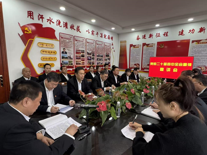為深入宣傳貫徹黨的二十屆四中全會精神,切實把全體黨員干部的思想和行動統一到黨中央決策部署上來,按照古冶區委統一部署,2025年12月12日,區委社會工作部汪曉龍部長帶隊的黨的二十屆四中全會精神宣講團蒞臨我公司宣講。集團公司黨委高度重視,組織各黨支部書記、委員、黨員骨干及入黨積極分子代表等26名同志聆聽了宣講。集團公司黨委副書記王林成同志親自主持宣講會,與全體參會同志齊聲背誦海明人精神,展現了飽滿的學習熱情和堅定的奮斗姿態。