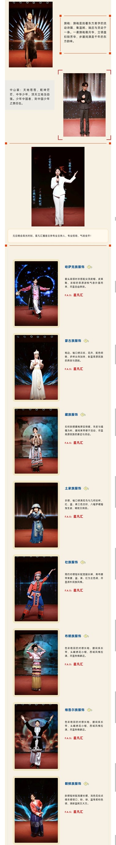 華服為媒,共敘團結情,五十六朵花,映照著祖國朝霞,五十六種心聲,共誦我愛你中國。我們攜手,走過風雨兼程的歲月,我們并肩,踏平前行路上的坎坷,讓聲音傳遞深情,讓友愛澆灌繁花,同心筑夢新時代,共譜盛世好年華!