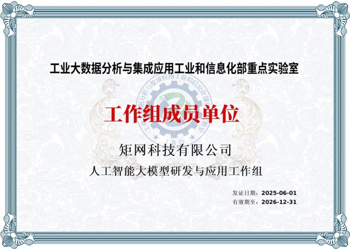 近日,國家工業信息安全發展研究中心發布了工業大數據分析與集成應用工業和信息化部重點實驗室(以下簡稱“實驗室”)2025年度工作組成員單位名單。矩網科技有限公司(以下簡稱“矩網科技”)成功入選實驗室人工智能大模型研發與應用工作組成員單位。