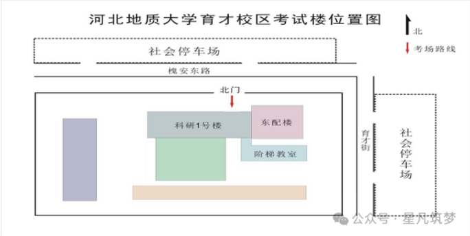 請考生從槐安東路河北地質大學育才校區北門進入校園,考試樓位于科研1號樓。