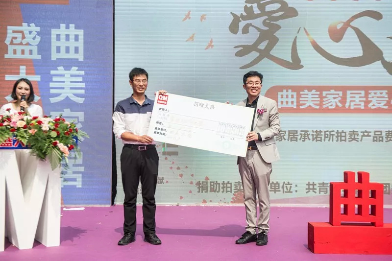 一個好的企業在自身做大做強的同時,一定也不忘回報社會,曲美家具聯合共青團豐南區團委,逸慧公益助學在開業啟動儀式現場進行了愛心拍賣活動,現場所有拍品均有曲美家居唐山店提供,所有拍賣所得善款一萬五千元捐助給了豐南楊英莊小學用于校園建設,楊英莊小學校長張記會校長現場接受了悅居(唐山)股份有限公司董事長沈志勇先生送出的現場籌集一萬五千元善款,同時感謝現場的所有參與愛心拍賣的社會各界企業家。