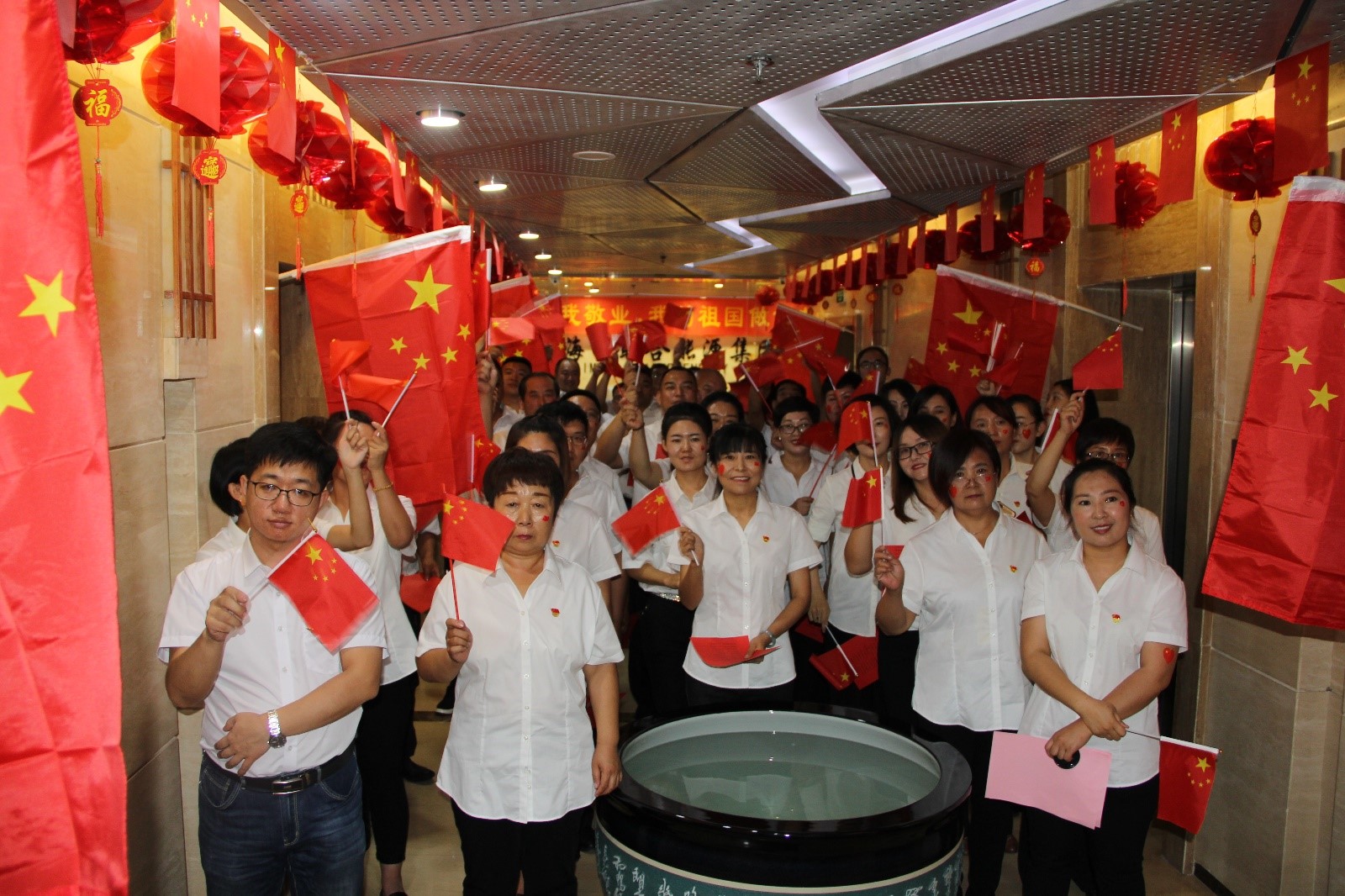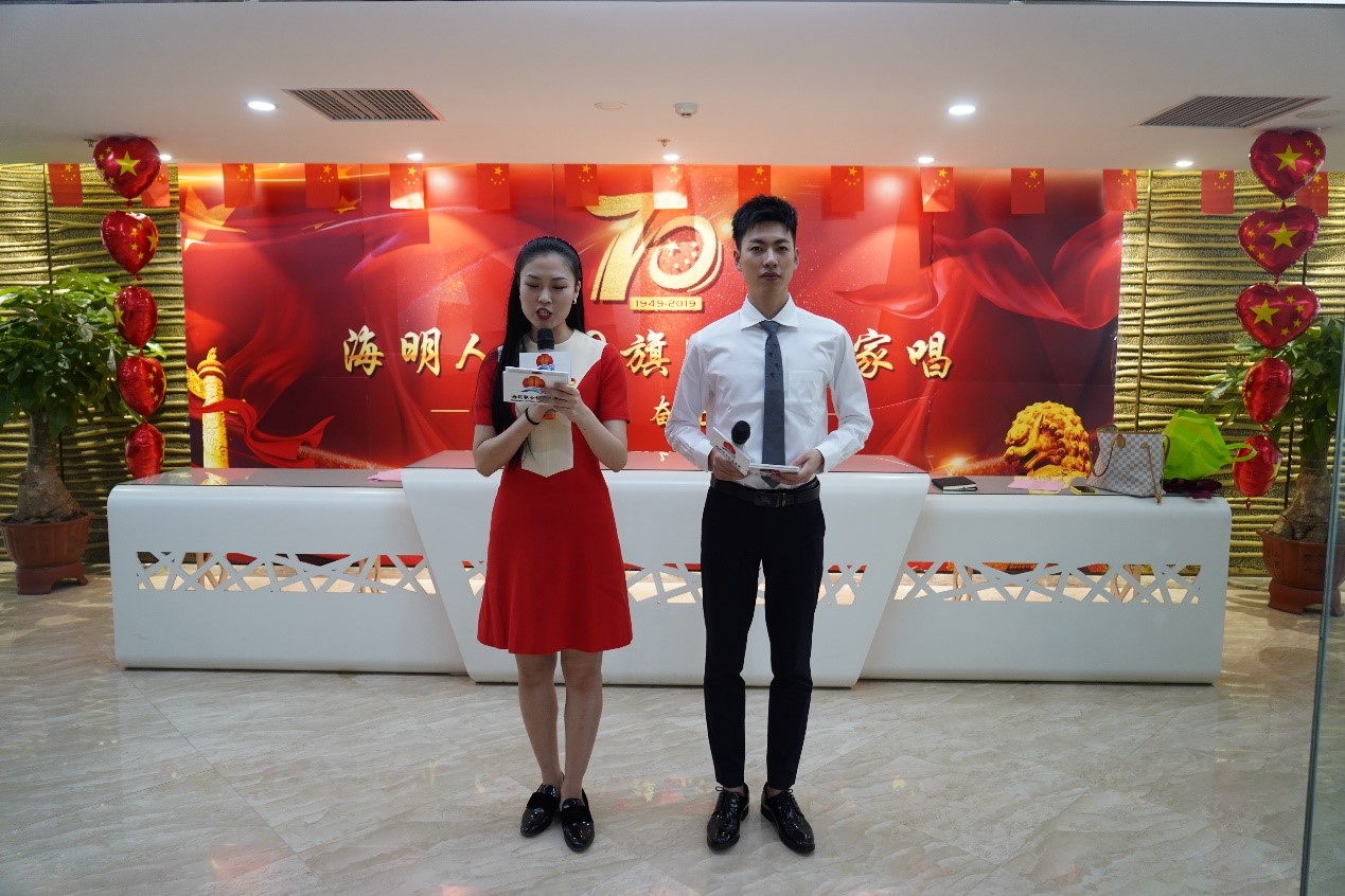 為了迎接中華人民共和國70周年華誕,在2019年9月29日下午14:00,海明聯(lián)合能源集團董事長桑海明先生、總裁桑鶴明先生攜全體員工積極開展“迎國慶,海明人與國旗同框大家唱”活動,共同迎接歡慶我們偉大祖國的生日。