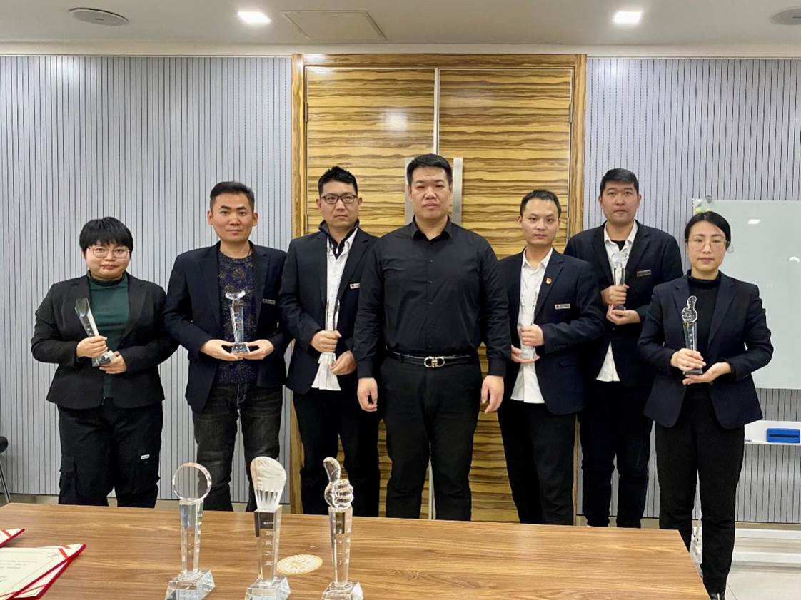 公司領(lǐng)導(dǎo)與優(yōu)秀員工合影留念,望新的一年全體員工工作再上新臺階。