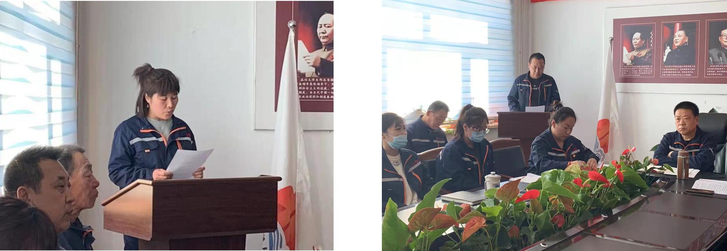 食堂崗位代表:王紅 表態(tài)發(fā)言 更勤崗位代表:柴曉龍 表態(tài)發(fā)言