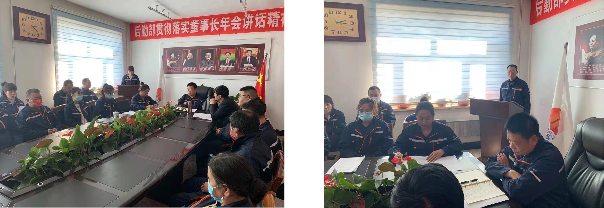 2022年2月26日集團公司召開了2021年度表彰大會,會上董事長發(fā)表了重要講話。董事長在講話中對2021年度各單位所取得的成績進行了充分肯定,為2022年全集團實現(xiàn)高質量發(fā)展指明了方向。董事長講話站位高遠、思想深邃,具有十分重要的戰(zhàn)略指導意義和激勵鞭策作用。后勤事務部高度重視,周密研究,精心部署,立即召開相關工作會議: