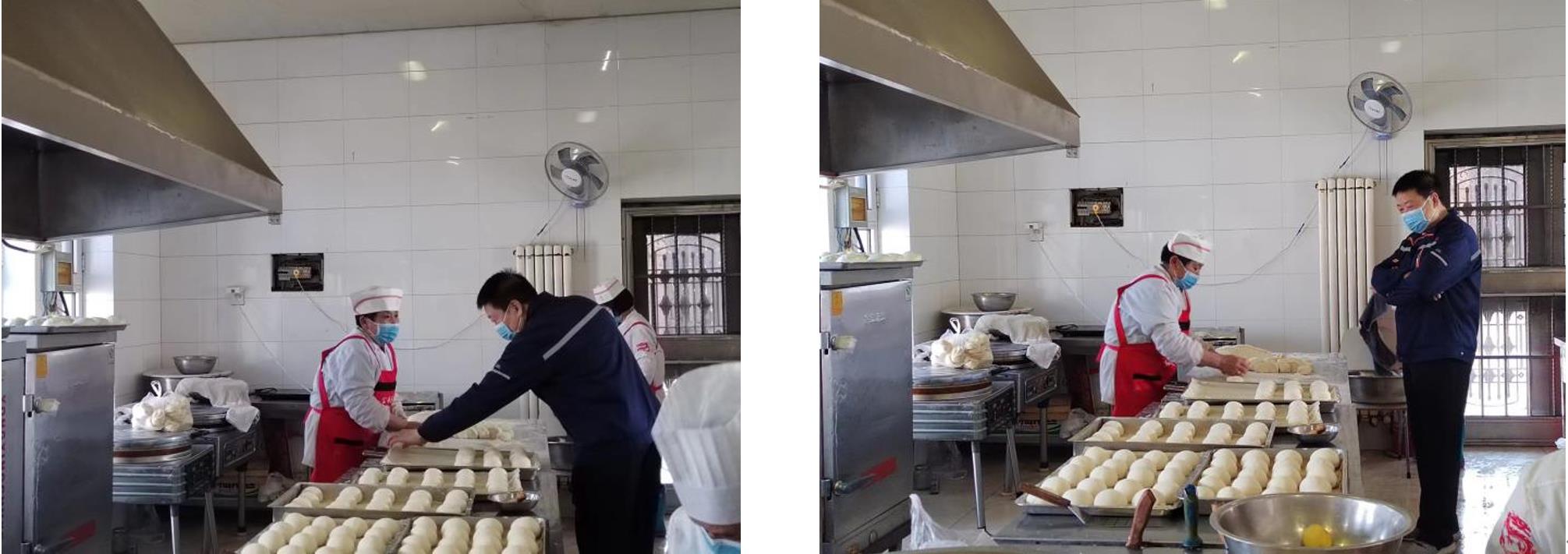 為保障生產(chǎn)需求,在疫情十分嚴(yán)峻的情況下,安環(huán)委領(lǐng)導(dǎo)王林成王總多方協(xié)調(diào)關(guān)系,為北方貨運(yùn)公司辦理百余張大貨車通行證,所以食堂用餐人員驟增,在后廚人員不足的情況下食堂采取早晚兩個(gè)班次,并在清掃隊(duì)和綠化隊(duì)借調(diào)2人協(xié)助食堂工作。積極服務(wù)一線崗位,為北方貨運(yùn)大車司機(jī)80余人準(zhǔn)備一日三餐,并為出港的司機(jī)師傅們準(zhǔn)備夜宵,合理搭配餐食。為儲(chǔ)運(yùn)部60余人和其他各崗位員工,以及外雇工、裝卸工、施工人員等提供一日三餐,并按照配餐標(biāo)準(zhǔn)準(zhǔn)時(shí)配送到崗。積極聯(lián)絡(luò)各單位負(fù)責(zé)報(bào)餐人員,為一線生產(chǎn)單位優(yōu)先配送,絕不能影響一線生產(chǎn)。在住宿問題上,充分利用廢舊床鋪和上下鋪,合理安排床位,協(xié)調(diào)儲(chǔ)運(yùn)部黑白兩班人員輪流休息,解決了封控在公司60余人的住宿問題。從思想上和行動(dòng)上做到深入一線,保障公司生產(chǎn)的正常運(yùn)行。