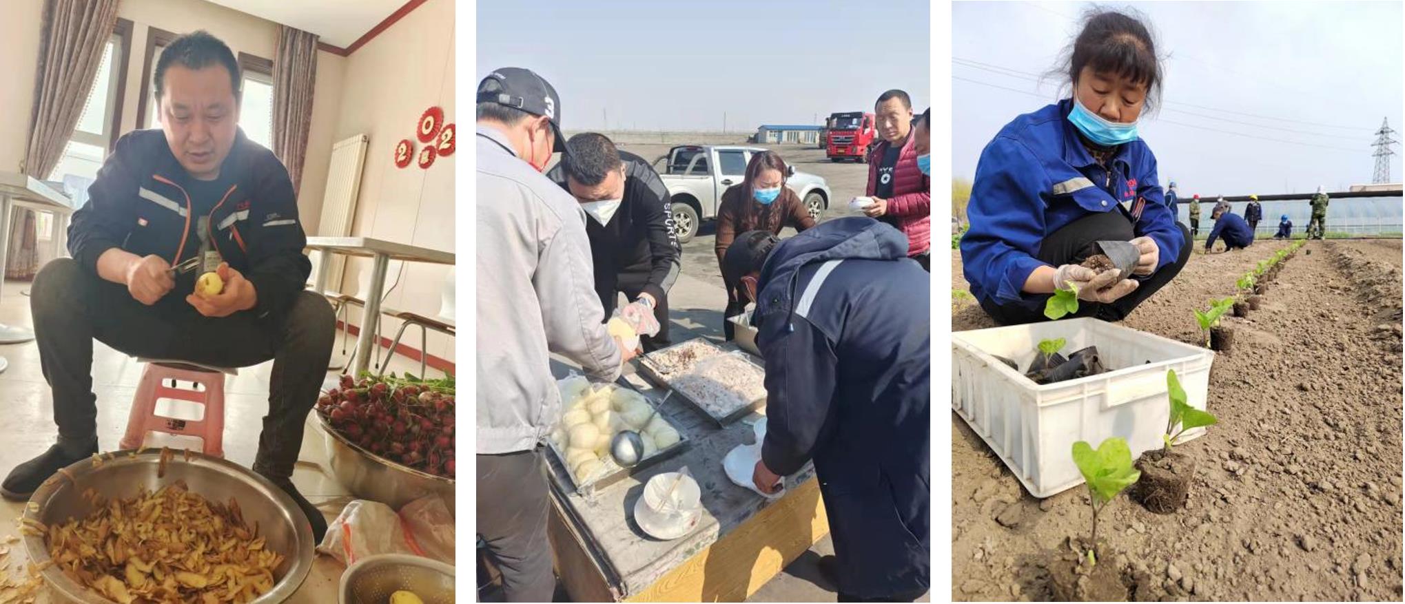 后勤部各崗位員工工作積極主動(dòng),總經(jīng)理張文雨親臨現(xiàn)場(chǎng)指導(dǎo)員工正確使用農(nóng)耕機(jī)械;司機(jī)師傅們?cè)诳臻e時(shí)間協(xié)助食堂工作,為北方貨運(yùn)公司和儲(chǔ)運(yùn)部一線員工送飯、打飯。充分利用車間檢修時(shí)間,調(diào)動(dòng)車間人員協(xié)助生態(tài)園完成除草、澆灌、施肥等工作。