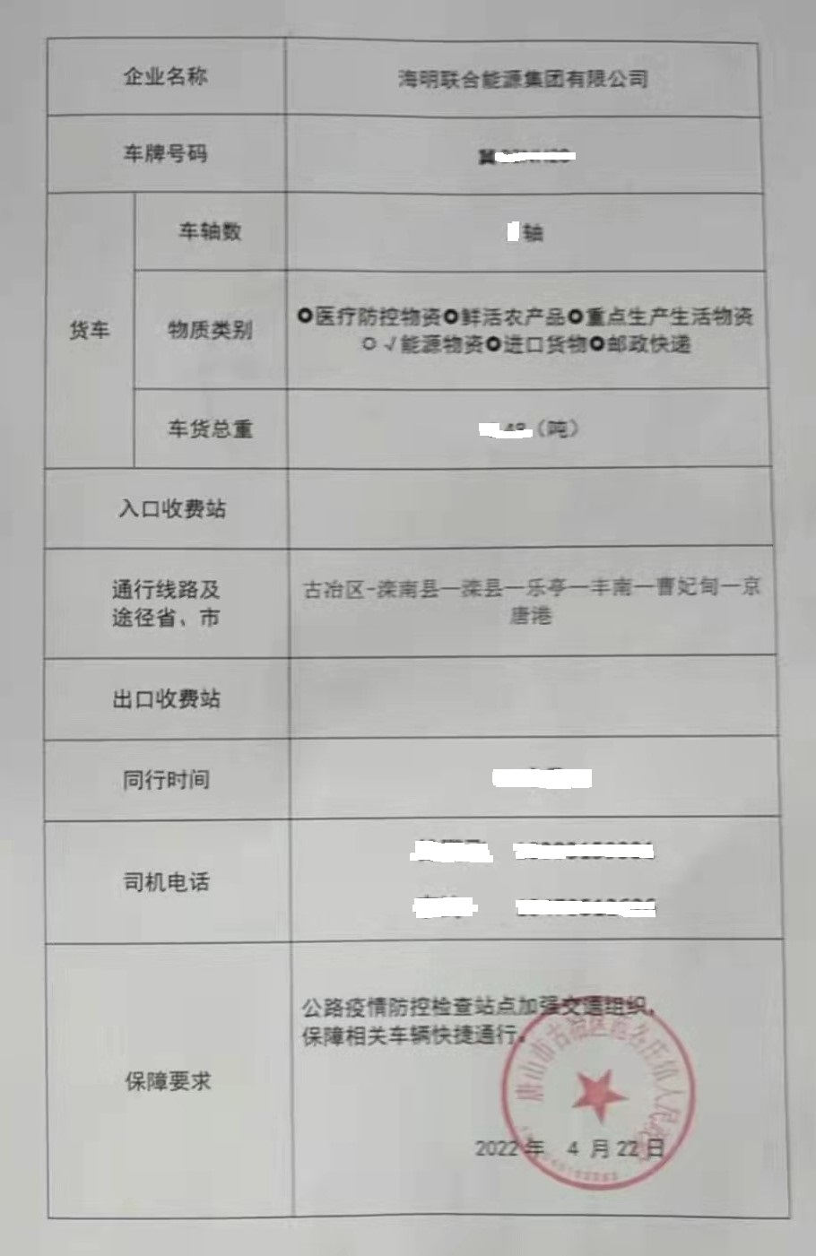 一是安環辦以集團公司對職能部門提出的“靠上去主動作為,走進去融入服務”為總要求,主動聯系當地政府和古冶區疫情防控部門,辦理194輛6軸大貨車通行證,解決了疫情期間能源運輸問題。以此同時,按照一線單位需要,及時辦理了管控區域內16輛小車通行證,從而解決了一線單位能源保供運輸管理和生活物資采購車輛出行難題。