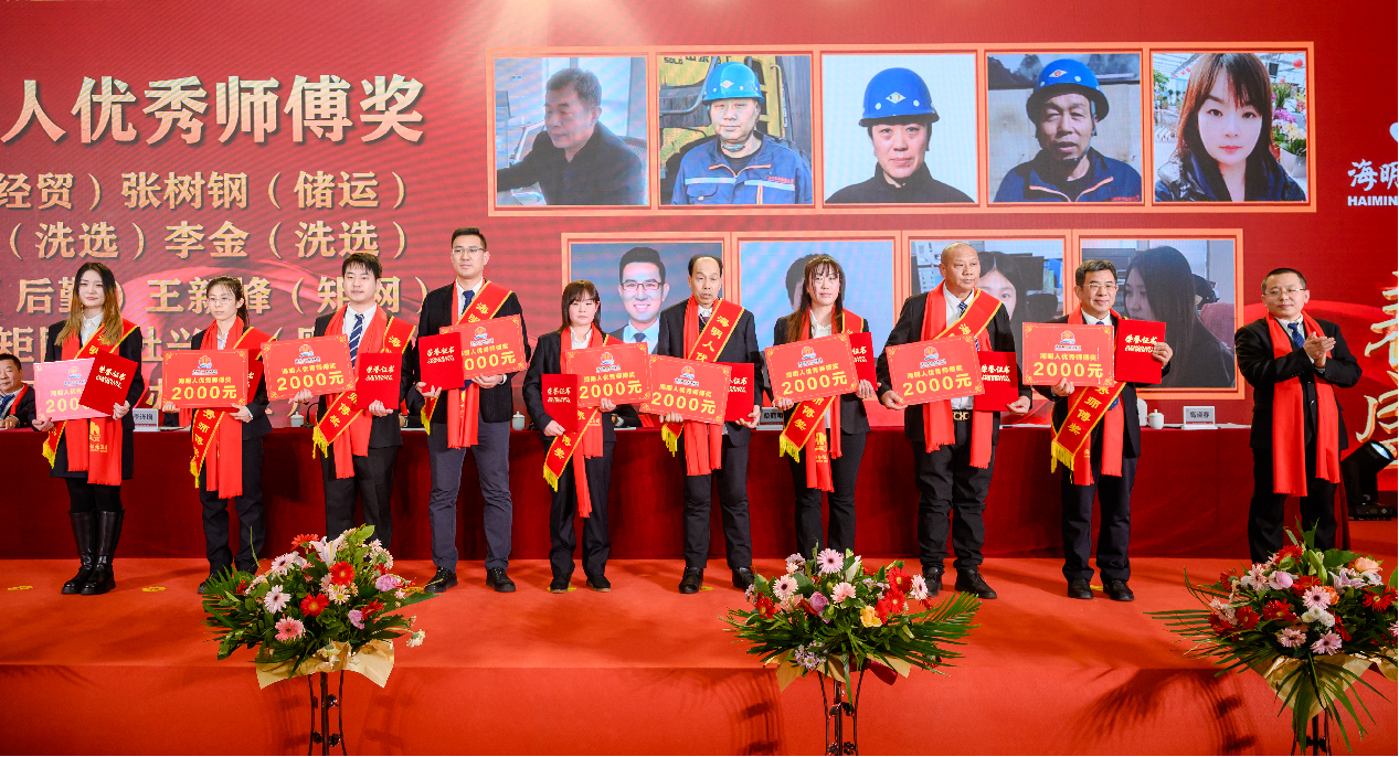 海明人優(yōu)秀師傅獎(jiǎng):經(jīng)貿(mào)事業(yè)部彭革;儲(chǔ)運(yùn)事業(yè)部張樹(shù)鋼;洗選事業(yè)部柴君茹、李金;后勤事務(wù)部宋春蕊;矩網(wǎng)科技王新峰、馬旭;財(cái)務(wù)部杜興家;辦公室馮雨璐;