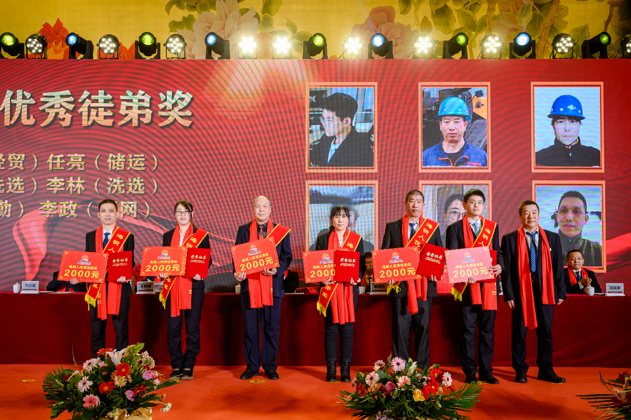 海明人優(yōu)秀徒弟獎(jiǎng):經(jīng)貿(mào)事業(yè)部劉鵬宇;儲(chǔ)運(yùn)事業(yè)部任亮;洗選事業(yè)部岳愛(ài)榮、李林;后勤事務(wù)部王紅;矩網(wǎng)科技李政、李遠(yuǎn)、劉輝;財(cái)務(wù)部劉賀巖、馮小珉;投融資部彭嘉偉;辦公室李小蕊 。
