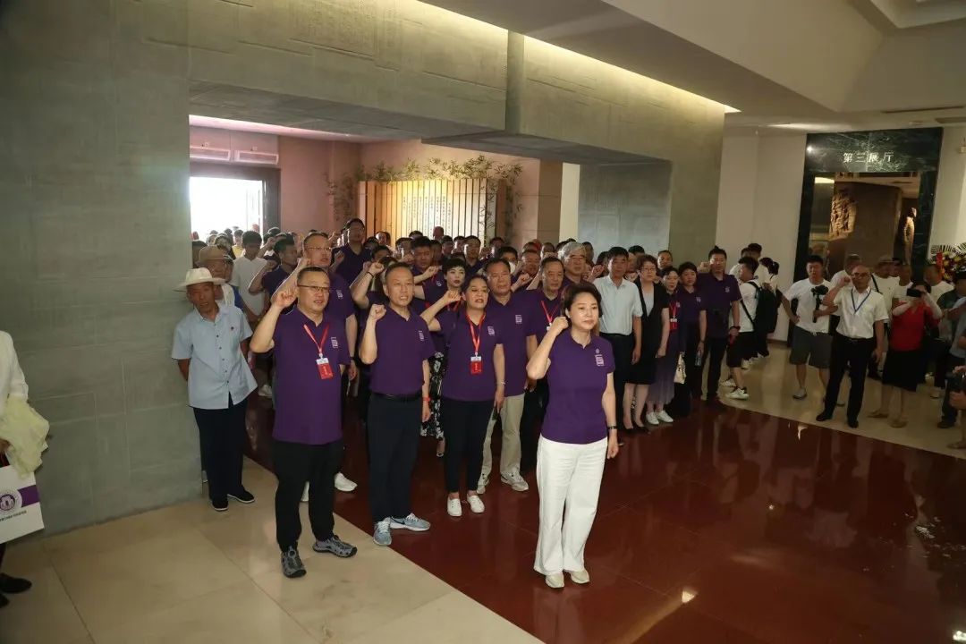 在黨的102歲生日到來這天,全體校友,心懷崇敬,首先來到唐山市樂亭縣,瞻仰了我黨重要創(chuàng)始人之一李大釗同志紀念館,校友們現(xiàn)場體驗了李大釗同志“鐵肩擔道義、妙手著文章”的崇高情操和精神追求。上午9時,與會校友緩步通過矗立著八根功績柱的中央紀念廣場,走過寓意李大釗38載生平的38級臺階,向李大釗同志敬獻花籃,并在黨旗和李大釗雕像前重溫入黨誓詞。