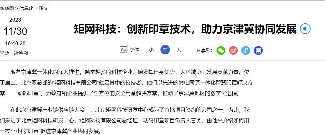 在推動京津冀協同發展的過程中,矩網科技以科技手段優化了政務服務,提高了社會效率。動碼印章解決方案不僅得到了政府的高度認可,也為各類企業提供了便捷、高效的服務,促進了區域內的經濟發展。