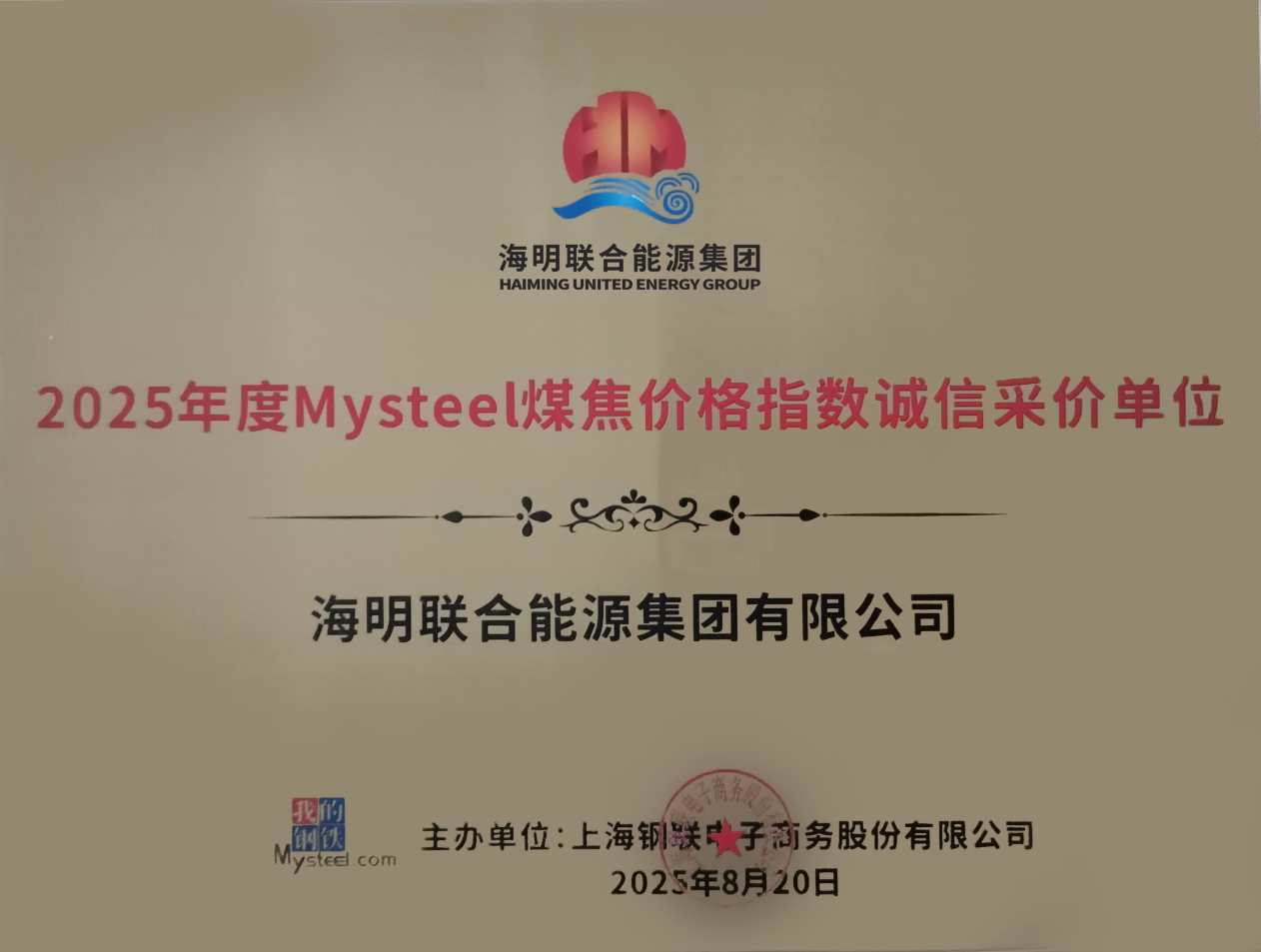 海明集團等16家單位被授予“2025年度Mysteel焦煤價格指數誠信采價單位”,極大的提升了海明集團在業界的影響力。